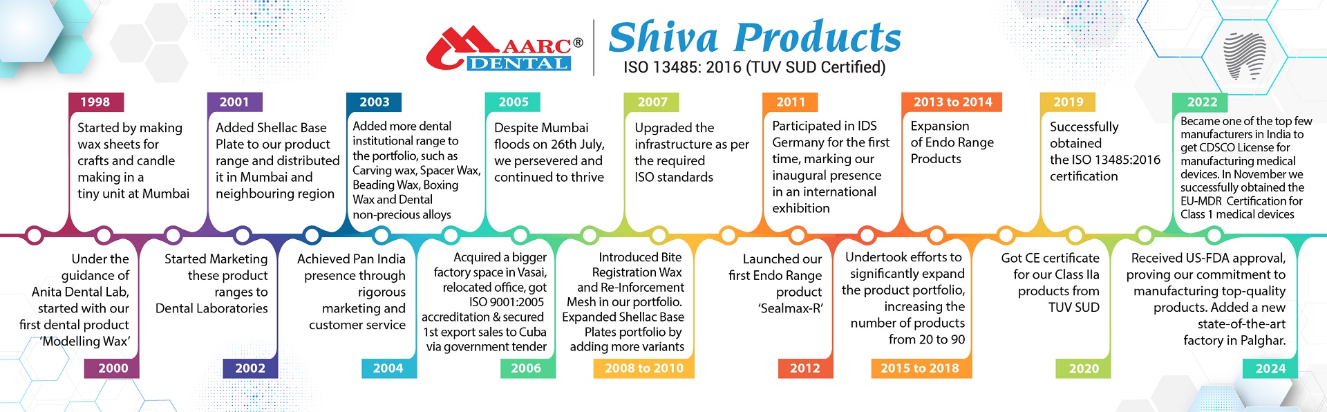 Established in the year 1998, Shiva Products is now an eminent ISO 13485:2016 certified (by TUV SUD, Germany) company with more than two decades of experience in the industry. We are proud to be recognized as a renowned manufacturer and exporter of premium quality Dental Consumables under the brand name “MAARC”. Which are specifically made according to international quality standards.