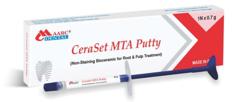 Description: Maarc CeraSet MTA Putty comes in paste consistency & made using pure mineral technology so its white in colour and will not stain operated teeth. CeraSet MTA Putty is fine grained tricalcium and dicalcium silicate. The paste is designed to set in vivo in the presence of moisture provided by the surrounding tissues. The pH of the paste is higher than 10.5 which makes it the best material for root repair.