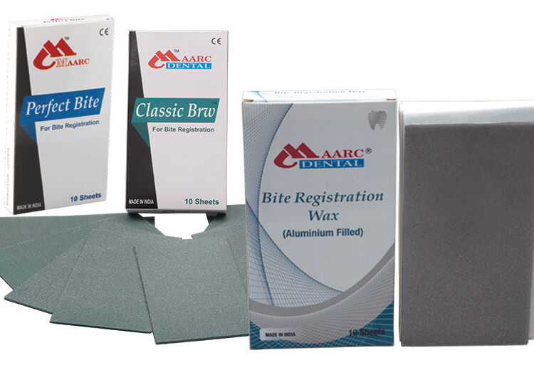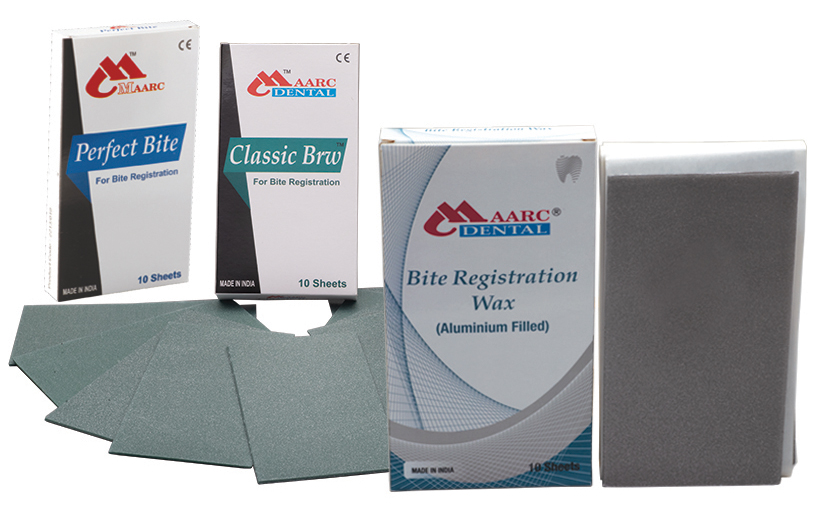 Packing: Each Packet of ‘MAARC’ Bite Registration Wax contains 10 sheets wrapped in non-adhesive Silicone Paper to facilitate easy removal. Available in 250 g pack approx.