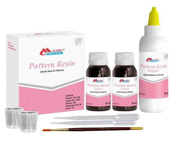 Description: Pattern Resin is a self-curing, general purpose acrylic resin used for making patterns, for fabricating copings, post and core buildups, lingual and palatal bars, implant attachments and telescopic crowns. It can be used for both direct and indirect pattern making.